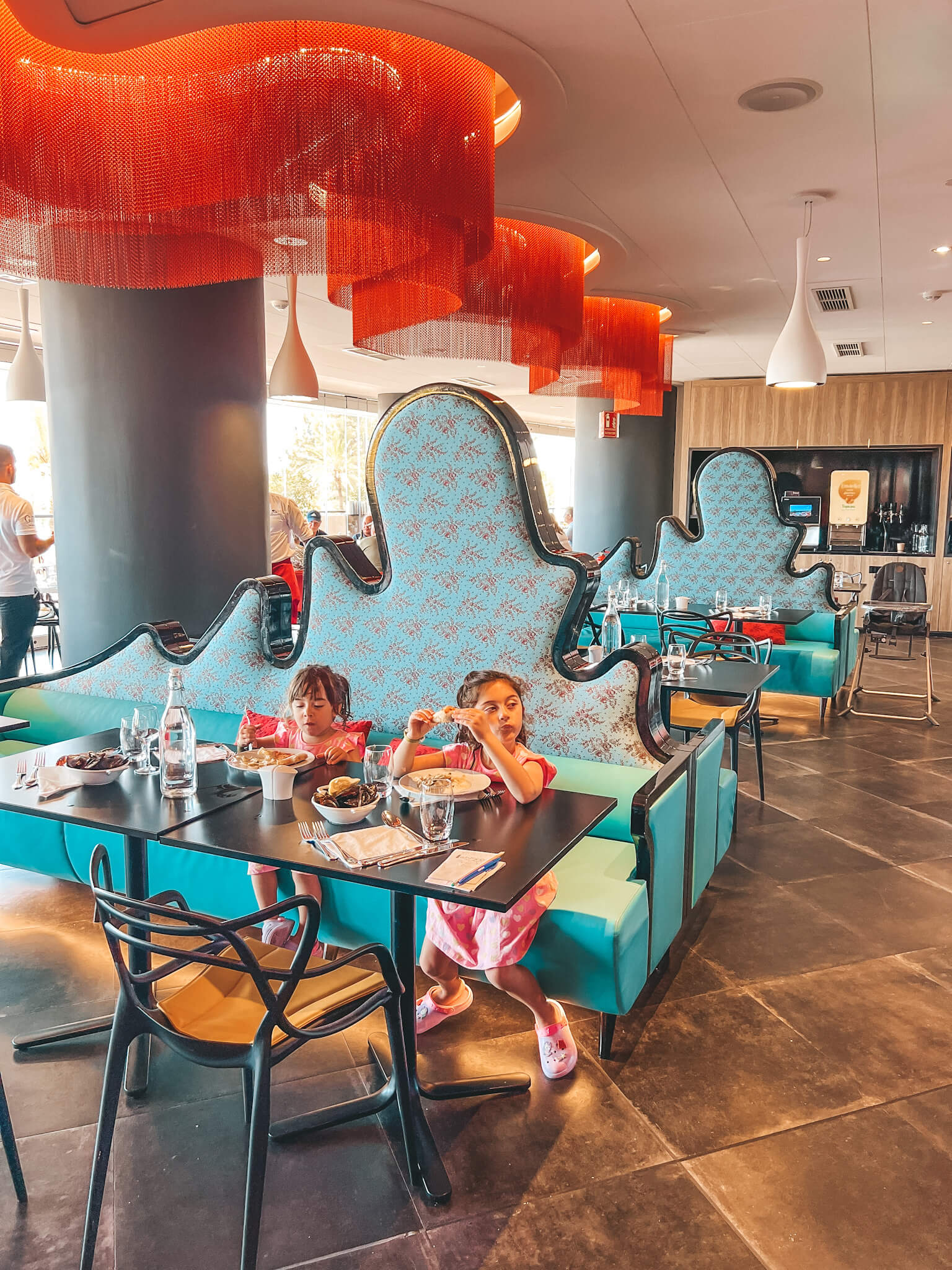 Pero lo que más nos gustó y queríamos hacer un alto es la calidad de la comida. Hay dos restaurantes, uno a la carta que necesita reserva previa y otro con buffet. La calidad del buffet es asombrosa y es en uno de los pocos hoteles que hemos podido comer tan rico, tan variado y tan sano. Con productos de primera y postres de pastelería. Este restaurante además tiene varios ambientes y lo mejor de todo, es que en todos lados hay una mini zona donde podrás tener todo para la alimentación de tu bebé. No te lleves nada porque tienen a tu disposición, diferentes tipos de leche, microondas, calienta biberones e incluso potitos.