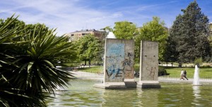 9. En el parque Berlín, podemos encontrar restos del antiguo muro de Berlín. Son tres grandes bloques que sirven de memoria para tan trágico episodio en nuestra historia. Se los trajeron para la capital porque las ciudades están hermanadas y su presencia haría que los habitantes madrileños y todos los turistas que lo visitaran hicieran una memoria de lo que pasó.