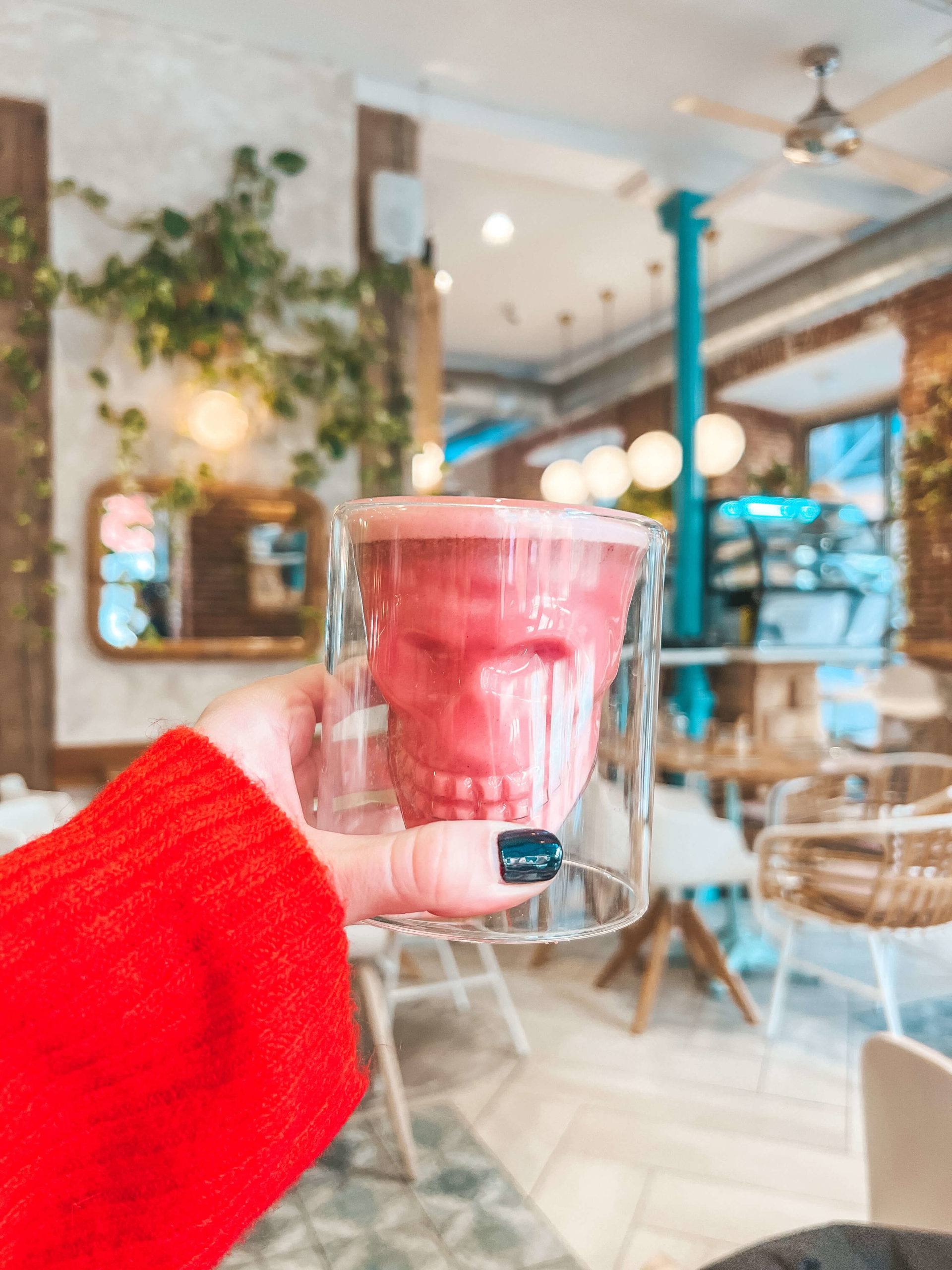 Si eres más de refrescos… la limonada de pepino esta muy rica y la kombucha que hacen es casera. ¡Cualquier cosa será acierto seguro! ¡Eso sí! Si quieres hacer fotos de Instagramers no puedes dejar de pedirte el Barbie chai latte, con polvo de remolacha y en vaso de calavera ¡Súper increíble!