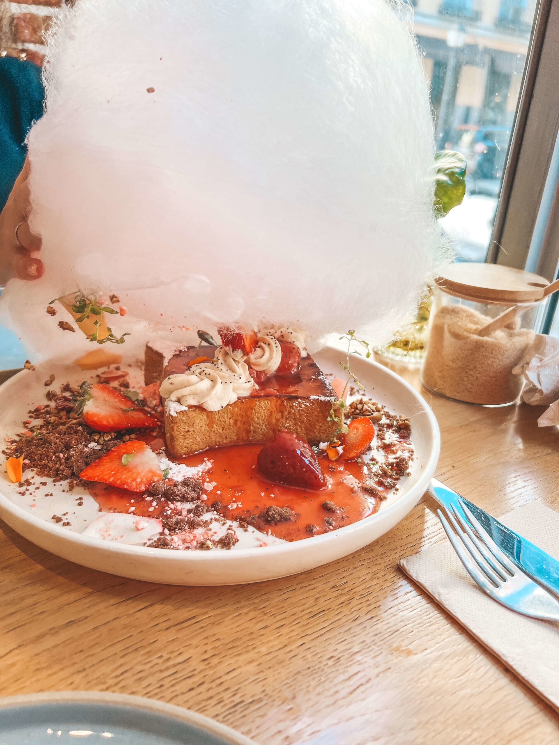 Pero bien es cierto, que Eatmytrip no es famoso por sus dinners sino por sus brunch más sorprendentes y llamativos. De su amplia carta y a primer golpe de vista no sabrás que elegir. Yo siempre que voy pruebo algo diferente y atrevido. Me gusta probar todo y os digo que… me es muy difícil poder recomendaros mi plato estrella. ¡Eso sí! De ahí no puedes salir sin probar las famosísimas tortitas con esa nube gigantesca de algodón rosa. Parece como si estuvieras en una feria y… ¡Son las tortitas más ricas que he podido probar nunca! También tienen otros postres cómo las tortitas enredadas con un helado de chocolate o la fantasía de la tostada francesa.