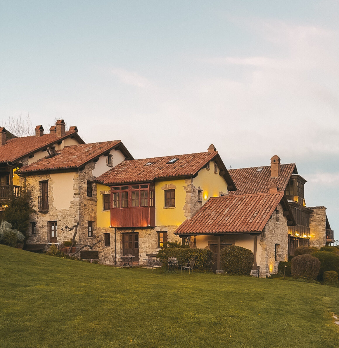 Despertar allí es un regalo y el enclave de cuento. Y aunque me repita una y mil veces, el sitio desprende magia a cada paso que das. Como os decía al principio, se encuentra en una montaña a escasos 20 minutos de Llanes. Se ven todos los Picos de Europa, como si fuera un cuadro a tamaño real. ¡Es una pasada de bonito!. La zona del hotel rural parece una aldea. Con casitas de piedra, un hórreo donde hacen masajes, un restaurante que merece mucho la pena y todo rodeado de verde y animales.
