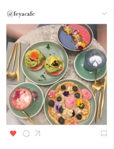 →Feya. ¿Alguien me explica como sucumbir al encanto de estos brunch? Bueno ya sabéis que los ingleses son muy de comer pronto y hacen unos almuerzos un tanto raros si los comparas con nuestras tradiciones mediterráneas, pero… ¿A quién no le apetece un café rosa con un açai bowl así de decorado? Por si no fuera poco la cubertetería me alucina.