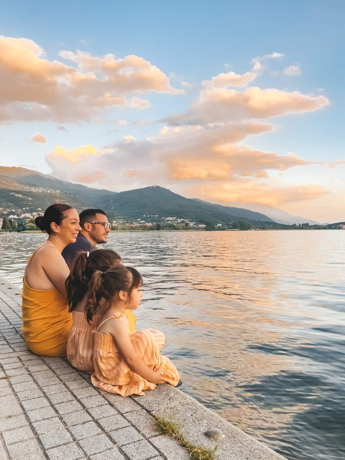 Por Ohrid te encontrarás iglesias de estilo bizantino con unos miradores al lago espectaculares y unos atardeceres de película. A lo largo del lago tienes una pasarela donde podrás ir andando e irás viendo zonas de tumbonas y restaurantes para pasar el día. Las dos tumbonas con dos cafés un día entero nos costó 10€. No está mal porque son pequeñas zonas, el agua del lago está muy tranquila y transparente y supone un lugar increíble y perfecto para estar con los niños.